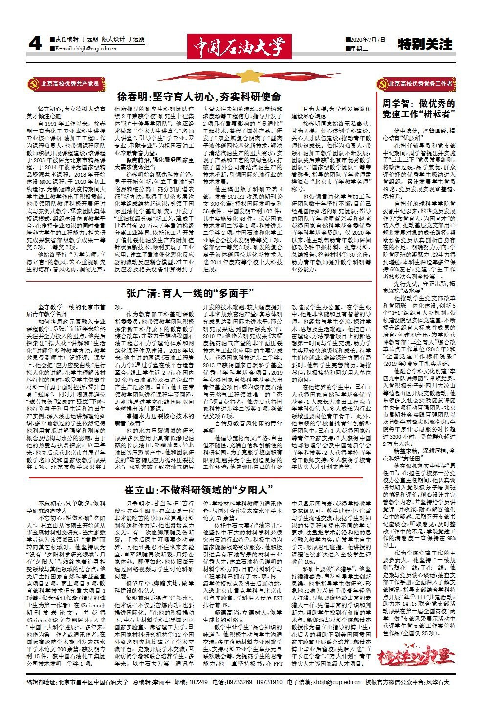 他融合学科文化创建“李四光中队讲师团”,带领党员、入党积极分子赴四川大凉山等边远山区开展支教活动,他带领多支社会实践团获评团中央专项行动百强团队、北京市暑期社会实践百强团队以及首都学雷锋志愿服务岗。学院每年累计志愿服务时长超过3200小时,受益群众超过2万余人次。