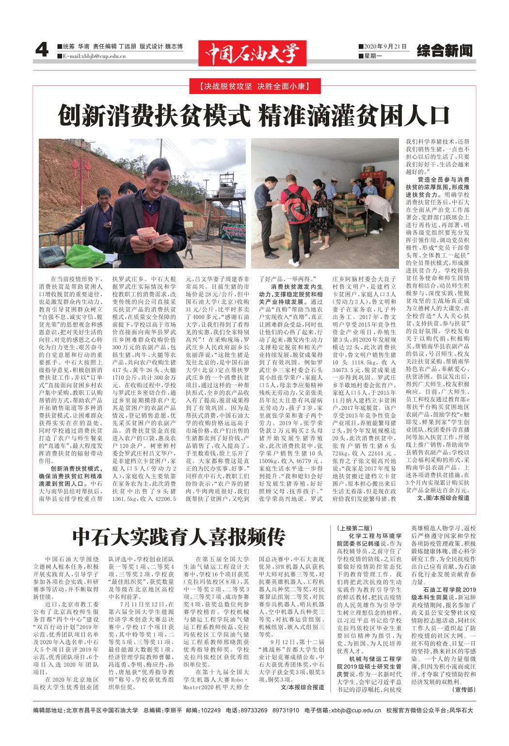 中 国 石 油 大 学 围 绕立德树人根本任务,积极开展实践育人,引导学子参加各项社会实践、科研赛事等活动,并不断取得新佳绩。
