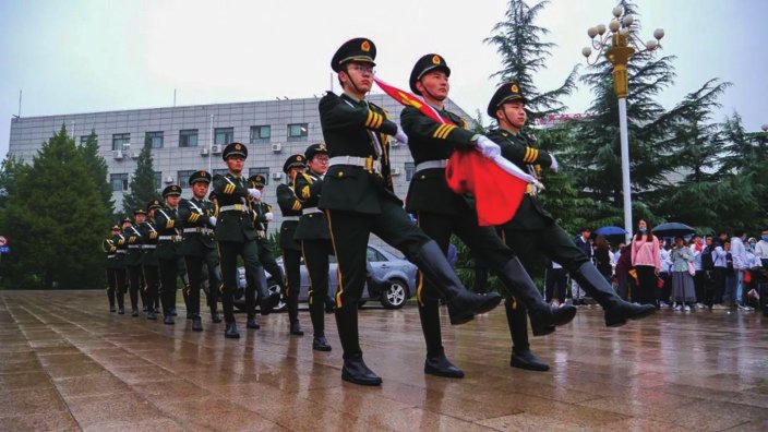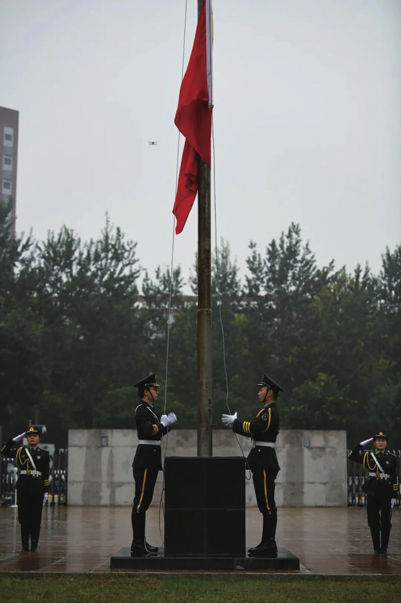 冉升起、迎风飘扬。全场同学列队肃立,昂首注视国旗,高唱中华人民共和国国歌,用嘹亮的歌声为祖国七十一岁华 诞 送 上 最 真 挚 的 祝福,共同向为新中国成立不懈奋斗的人民英雄