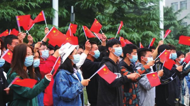 学生组织共同举办 2020年“迎国庆,升国旗”活动。学校 200 余名学生参加了活动。