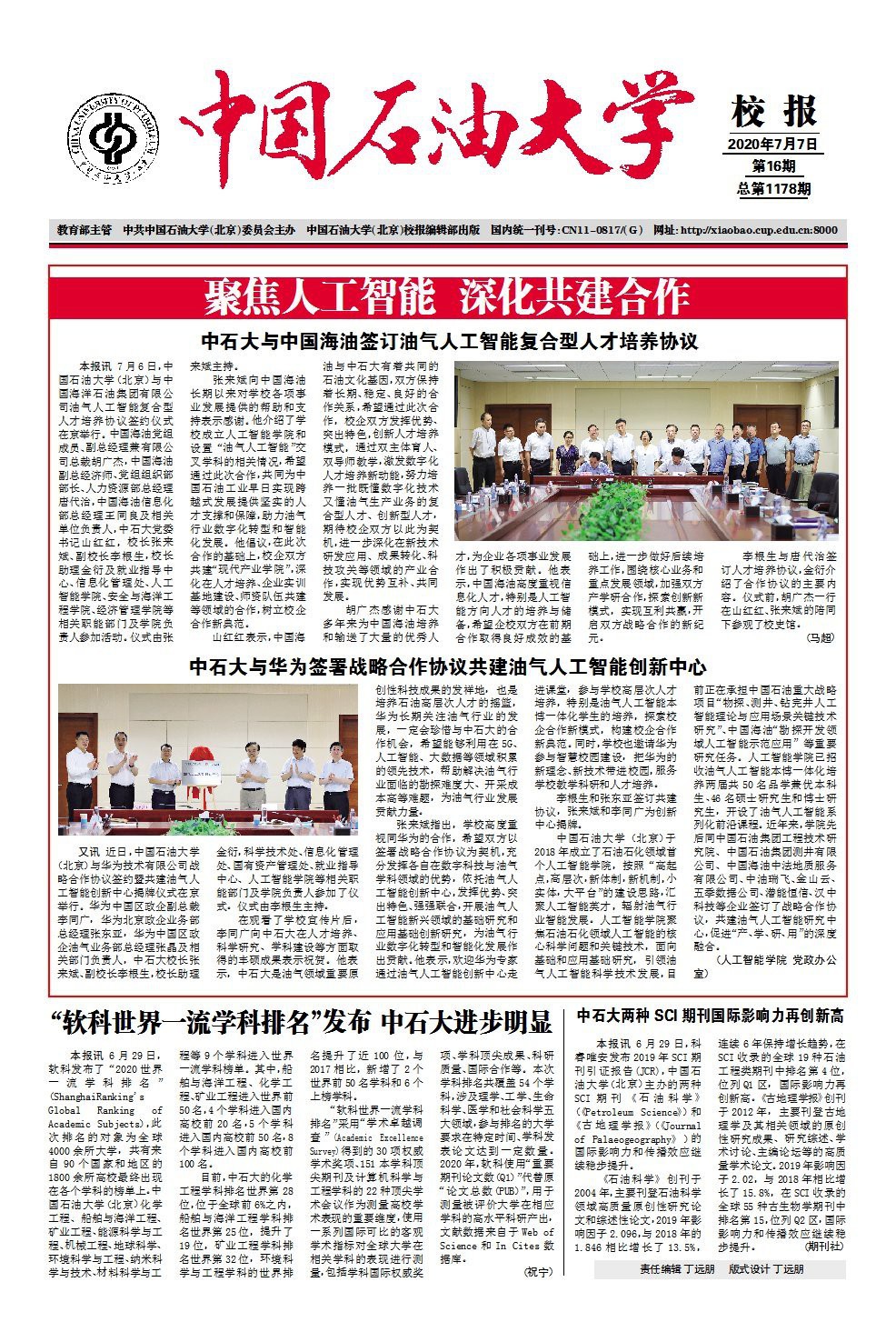 中石大两种SCI期刊国际影响力再创新高