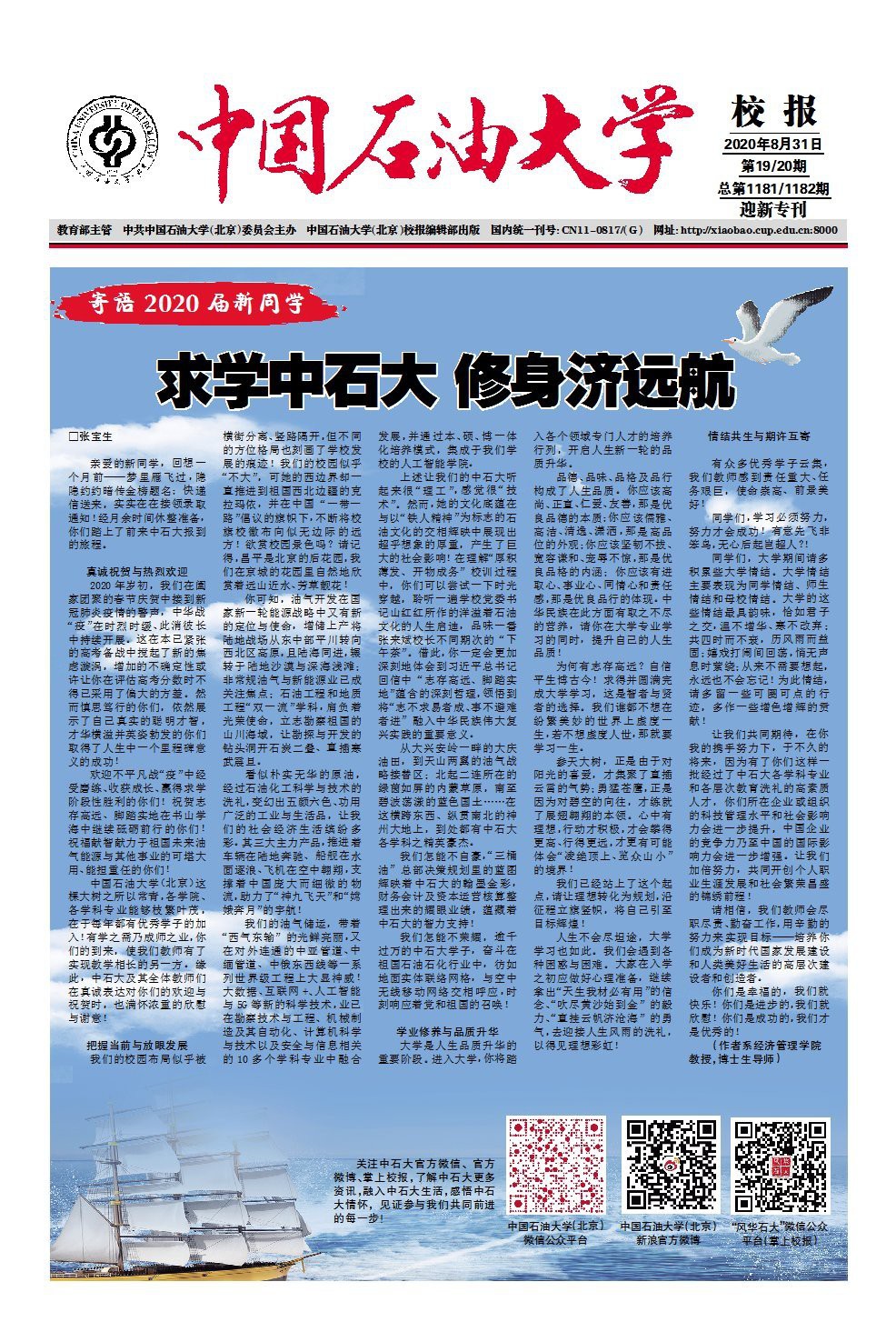 □张宝生亲爱的新同学,回想一个月前———梦里雁飞过,隐隐约约暗传金榜题名;快递信送来,实实在在接领录取通知!经月余时间休整准备,你们踏上了前来中石大报到的旅程。 真诚祝贺与热烈欢迎2020年岁初